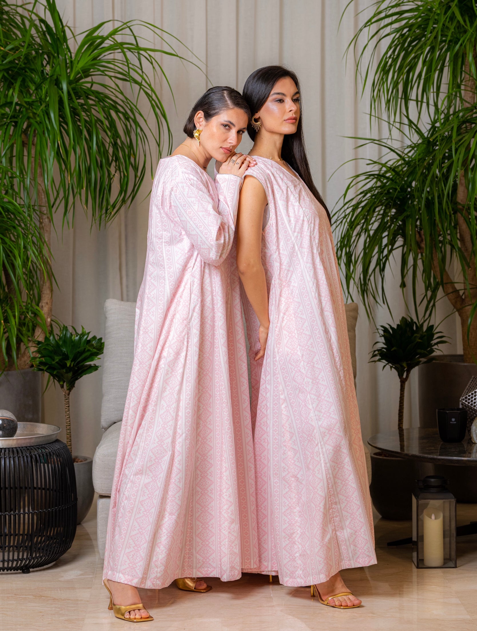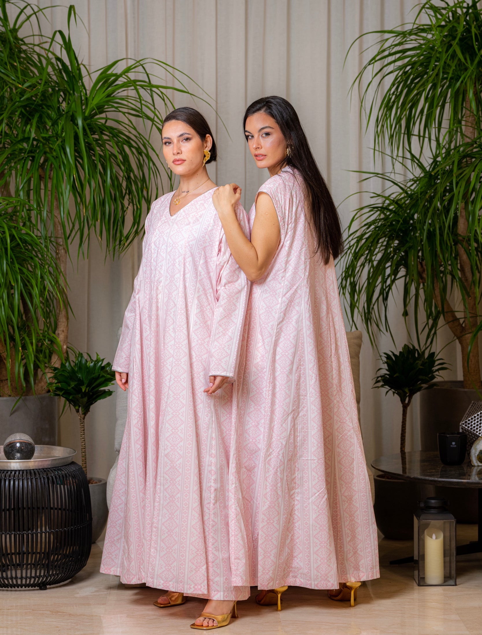 ð–§¹ Pink long sleeve kaftan with silver details in the sleeves.