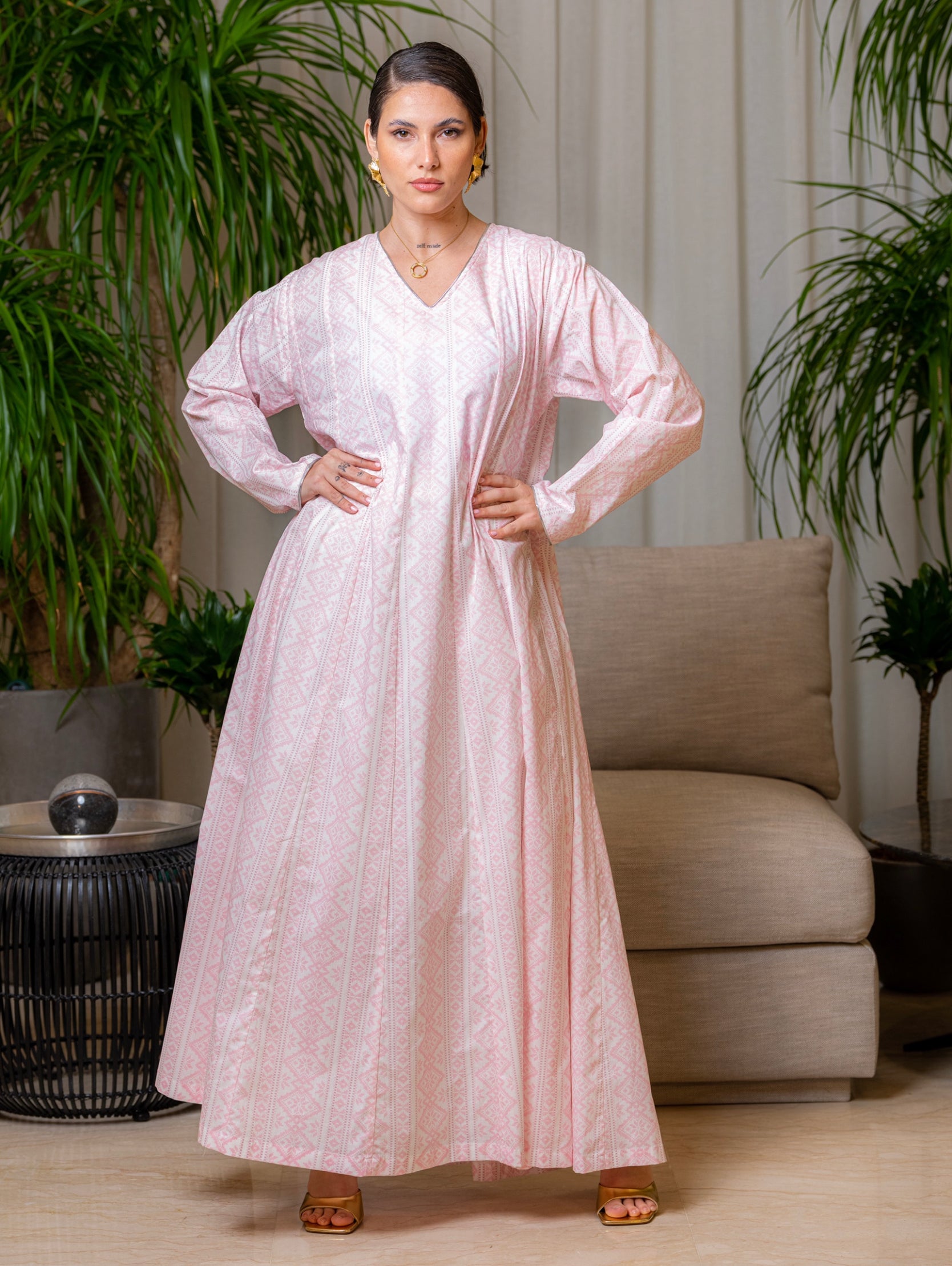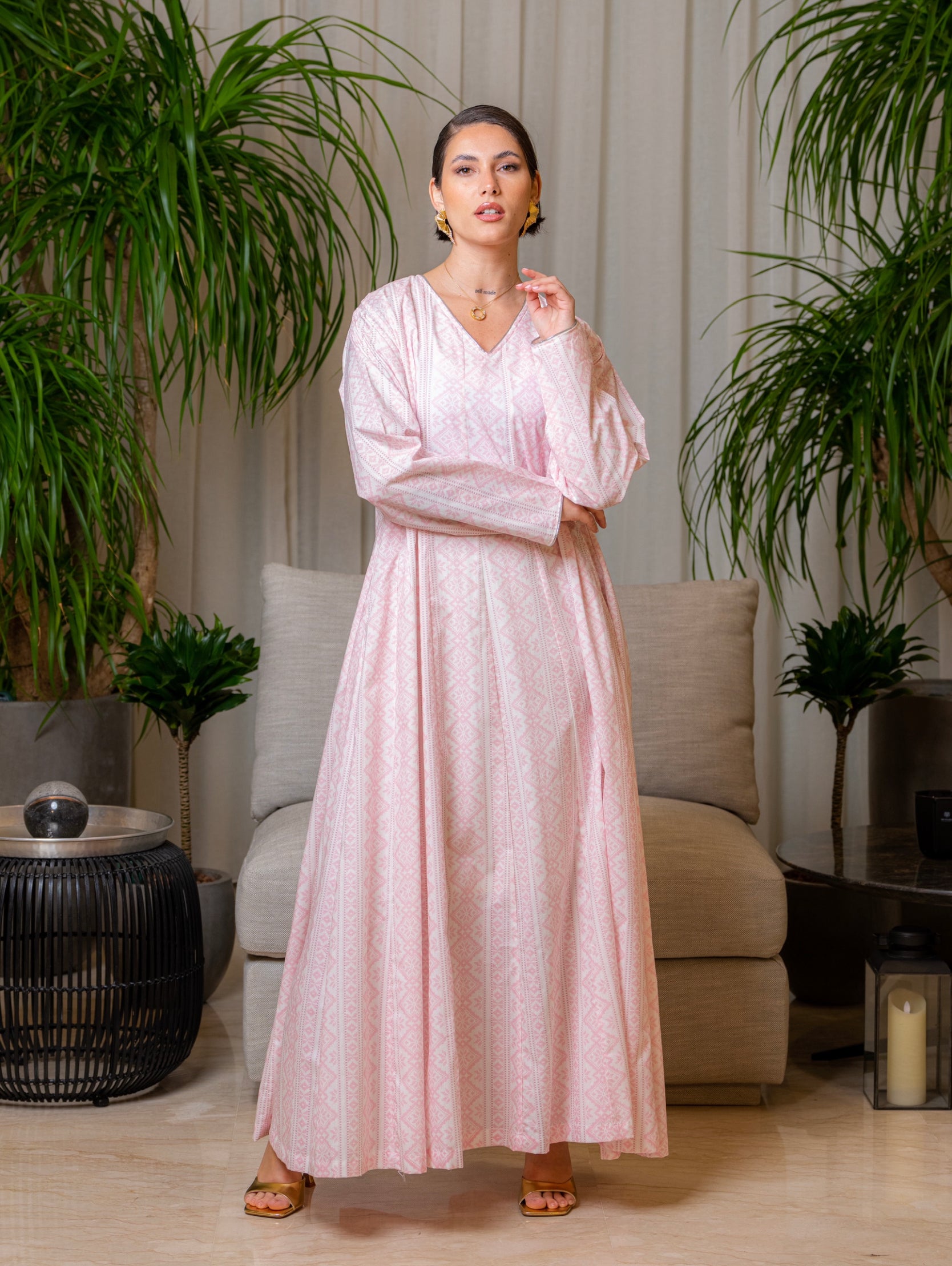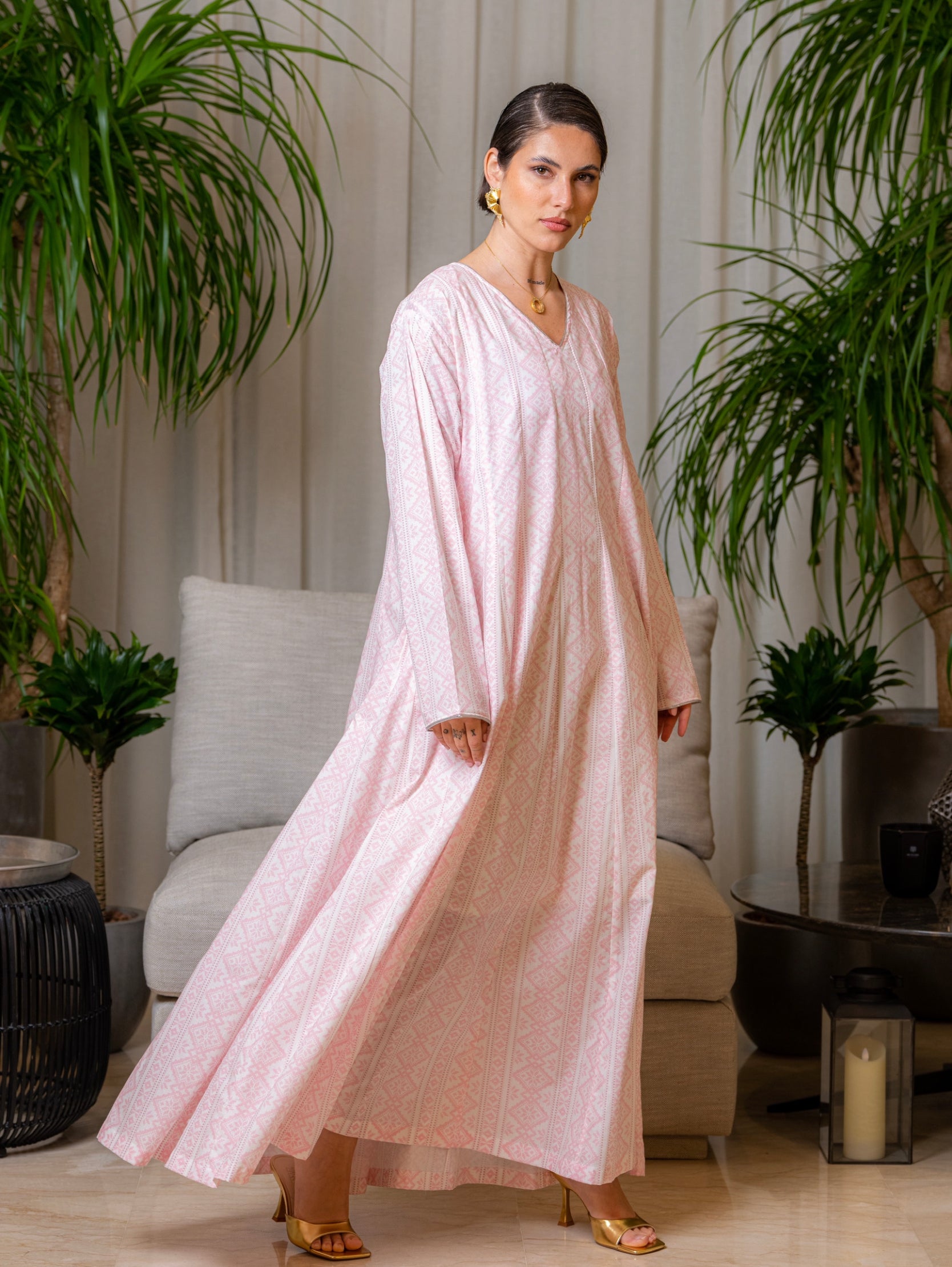 ð–§¹ Pink long sleeve kaftan with silver details in the sleeves.