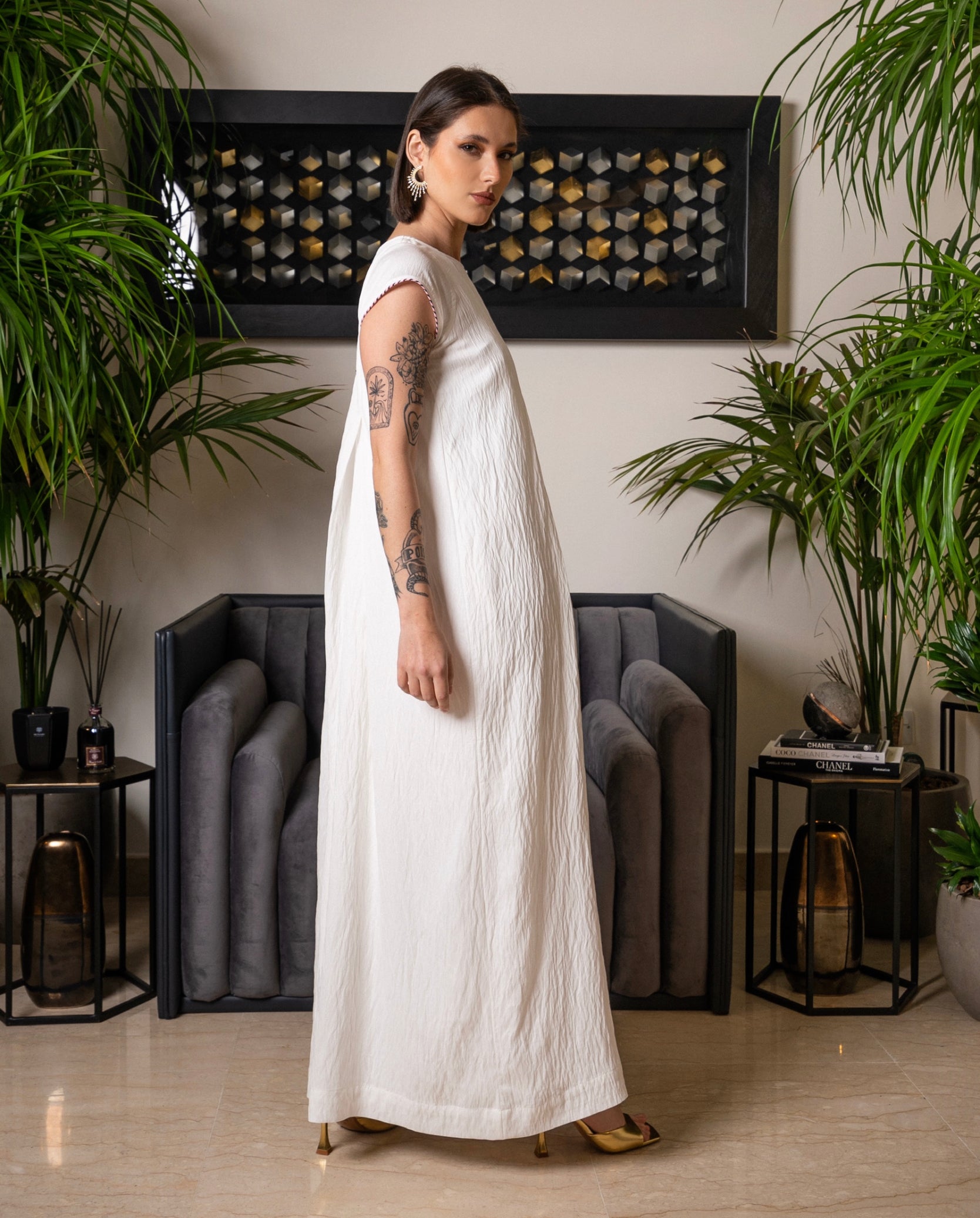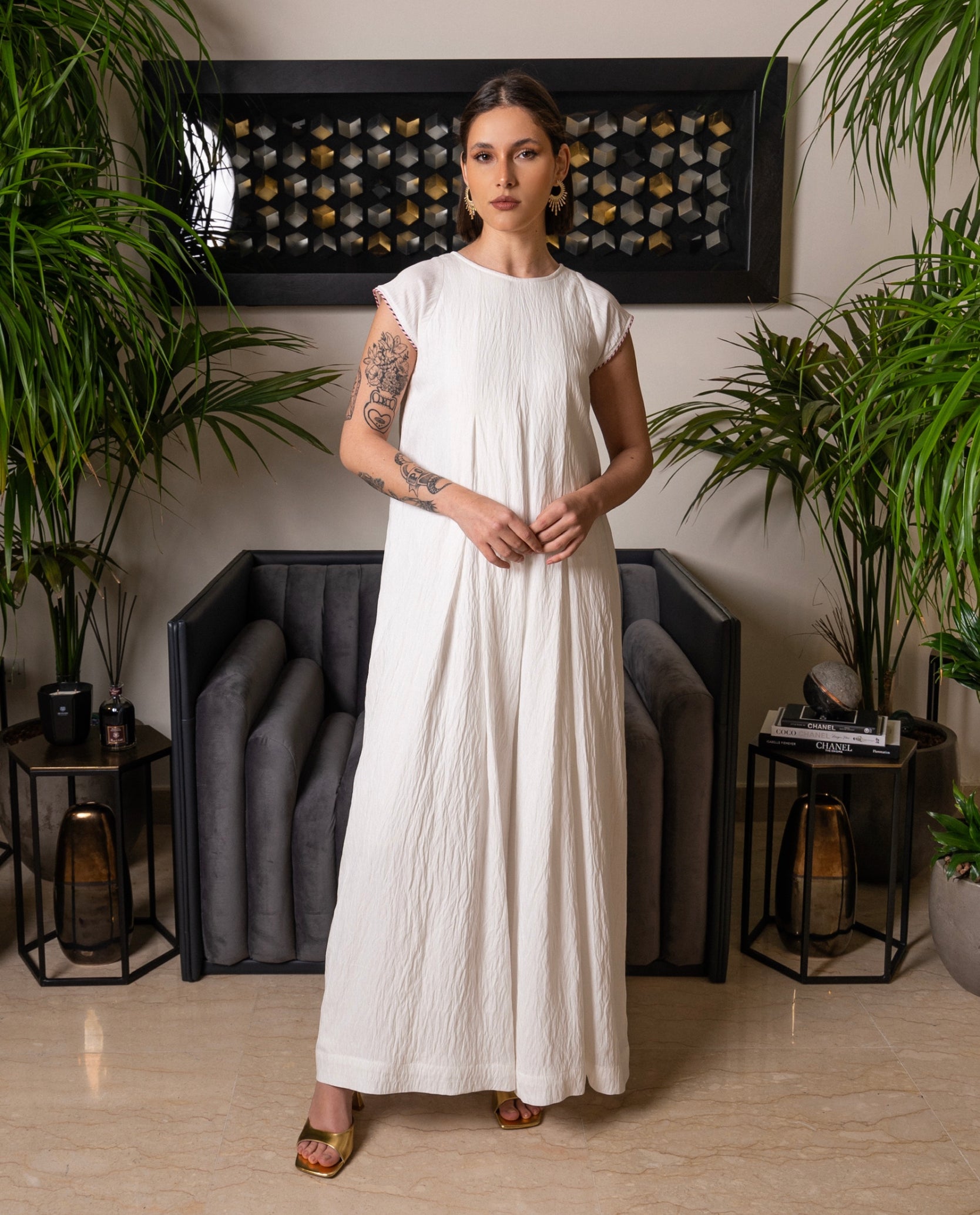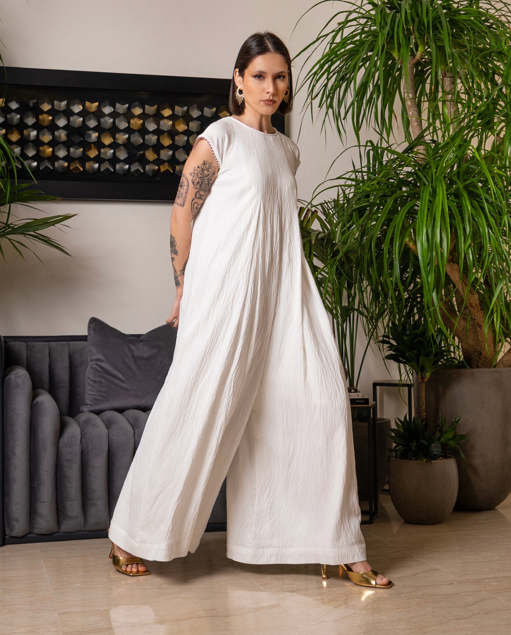 𖧹 White jumpsuit with pink and black details on the edge of the sleeves
